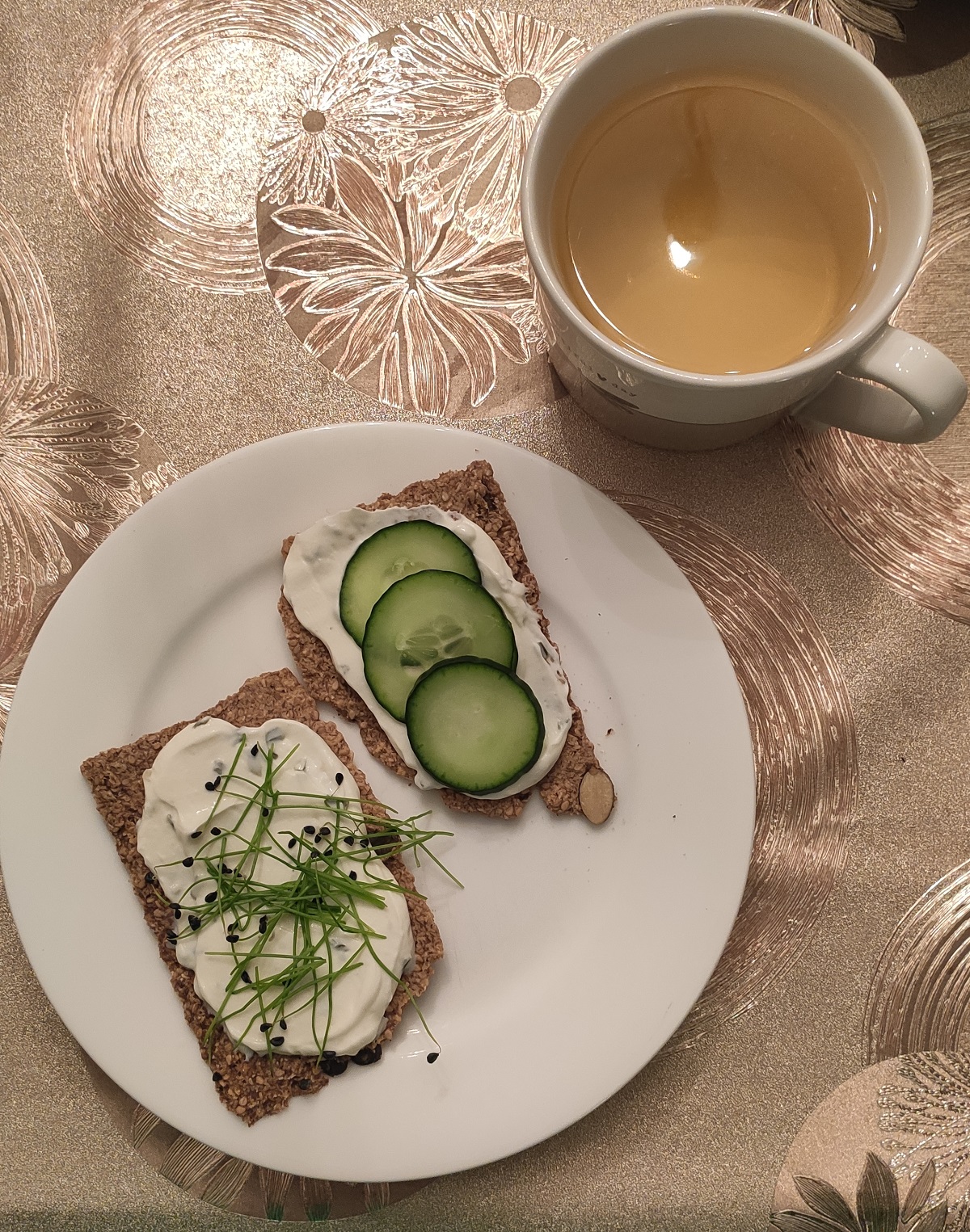Da es sehr wichtig ist nach dem Fasten den eigenen Organismus erst langsam wieder an feste Nahrung zu gewöhnen, muss unsere „Liste des Begehrens“ noch etwas warten bis sie abgearbeitet wird. Es wird empfohlen, dass nach dem Fasten mindestens 50% der Anzahl an gefasteten Tage als Aufbautage eingelegt werden. Das heißt für uns bei 5 ganzen Fastentagen mindestens zweieinhalb, besser gleich drei Aufbautage. An diesen Tagen liegt der Fokus auf gut verdaulicher und nährender Kost. Bei uns kam deshalb Kartoffelpüree und Sauerkraut, sowie auch Vollkorn-Knäckebrot mit Kräuterquark auf den Tisch. Neben dem unglaublich guten Geschmack, hat es sich auch für uns als sehr verträgliche Kost herausgestellt. Wir haben dabei noch besonders auf ausreichendes Kauen geachtet, um auch so dem Magen die Verdauung zu erleichtern.