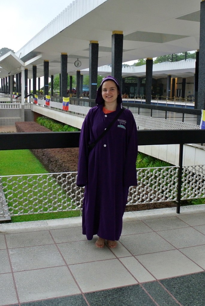 Touristen wie wir können diese nur zu den Nichtgebetszeiten besuchen. Dazu mussten wir uns aber noch etwas in Schale werfen (siehe Bild). Wir haben sogar die Möglichkeit genutzt, an einer kleinen Führung teilzunehmen und konnten so noch tiefere Einblicke in den islamischen Glauben (übrigens die Staatsreligion in Malaysia) bekommen.