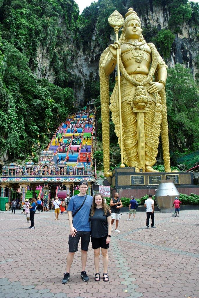 Direkt an Tag 2 haben wir uns die Batu Caves vorgenommen. Erreicht haben wir diese recht bequem und kostengünstig mit dem Zug. Wir waren absolut begeistert von den Batu-Höhlen in Kuala Lumpur! Als wir zum ersten Mal die riesige Statue des hinduistischen Gottes Murugan sahen, waren wir von der Größe mehr als beeindruckt. Auch wenn wir uns nicht gerade freuten, die vielen Treppen zu den Höhlen noch vor uns zu haben. Das Schwitzen sollte sich aber auszahlen. Die Tempel und Schreine, die in die natürliche Felsformation eingebaut waren, waren einfach atemberaubend und wir waren fasziniert von der Bedeutung, die dieser Ort für die Hindus hat. Wir glauben, die Bilder sprechen für sich.