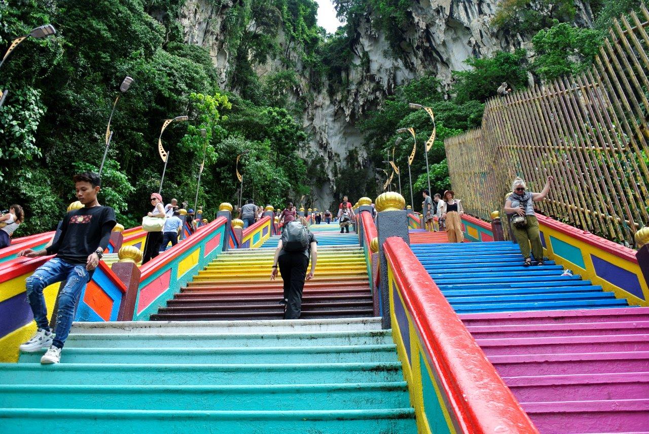 Die Batu Caves liegen im Norden an der Grenze von KL. Dorthin konnte man ziemlich unkompliziert für umgerechnet ca. 2 Euro mit dem Zug fahren.