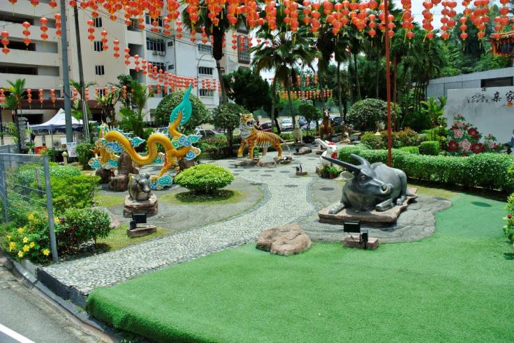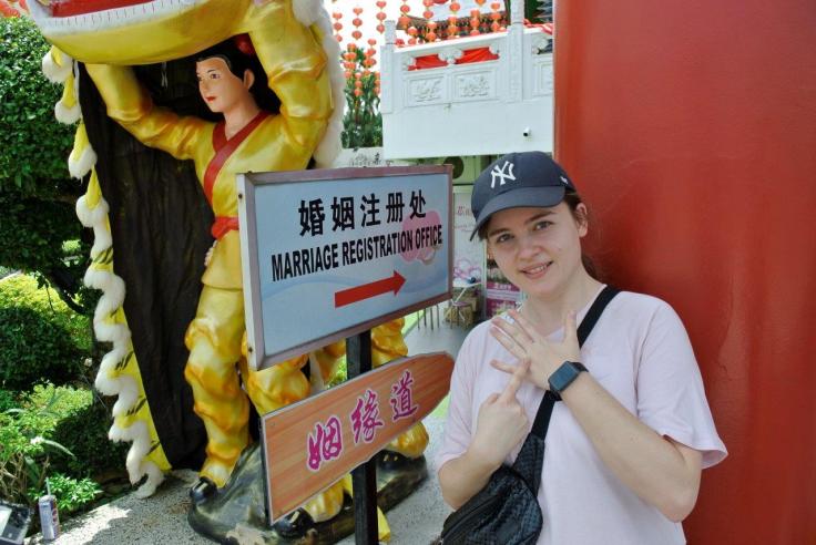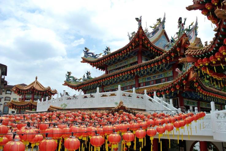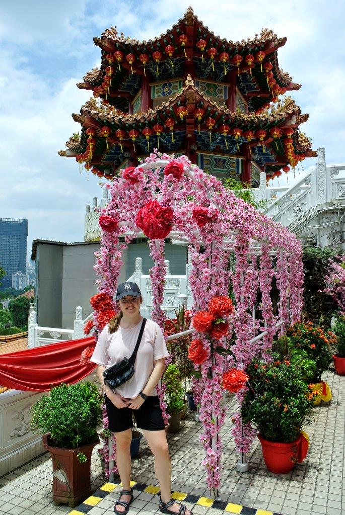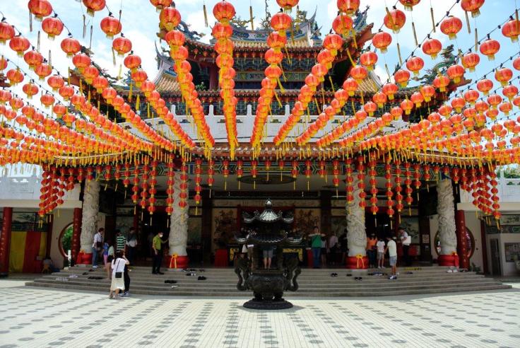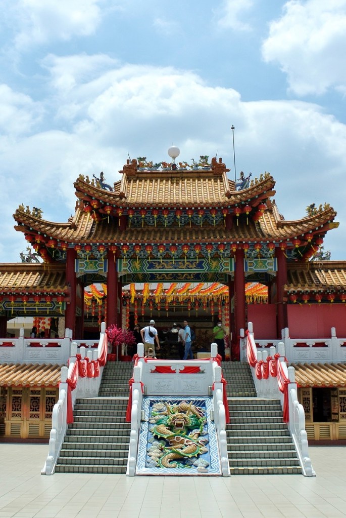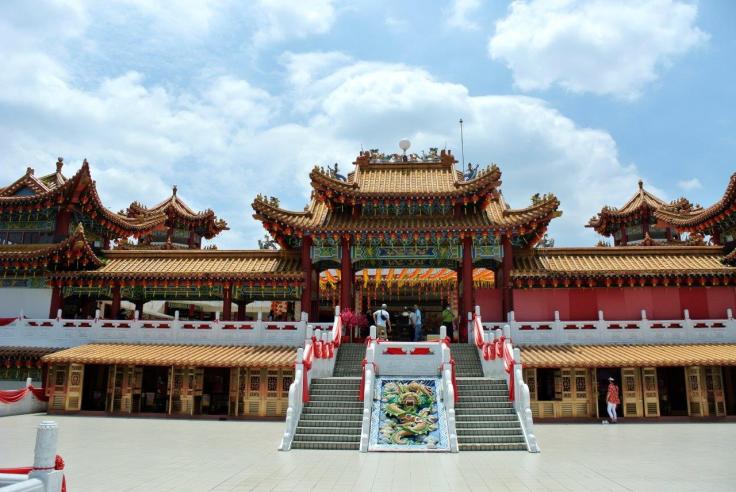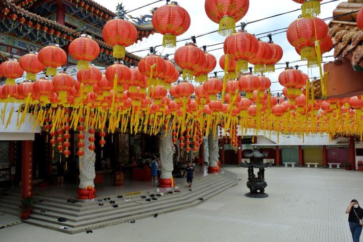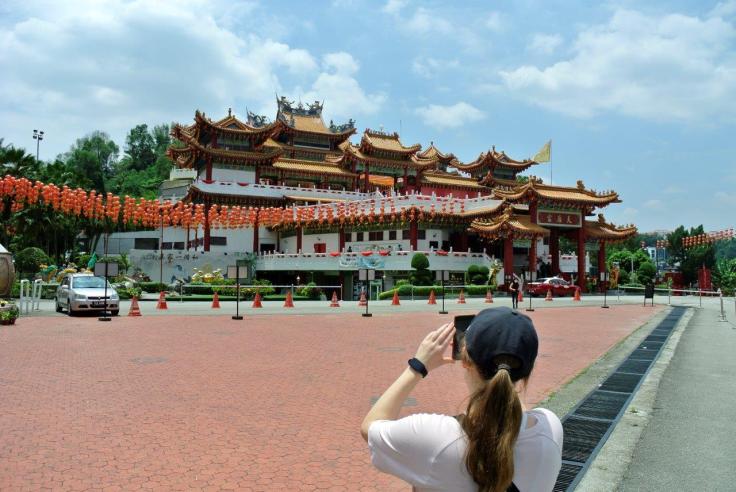 Der chinesische Thean Hou Tempel in Kuala Lumpur ist einer der größten Tempelanlagen in Südostasien. Er befindet sich südlich vom Stadtzentrum etwas erhöht auf einem Berg. Somit konnte man nicht nur den Tempel selbst, sondern auch den Ausblick auf die Skyline von Kuala Lumpur genießen. Wir haben die 5 Kilometer von unserem Hotel etwas unterschätzt und tatsächlich zu Fuß zurückgelegt. Das bei sommerlichen 32 Grad im Schatten und prallem Sonnenschein. Alina hat die Quittung für die fast 20.000 Schritte in Form von zwei Blasen an den Füßen direkt bekommen. Gelohnt hat es sich aber allemal. Es ist eine wunderschöne und sehr beeindruckende Anlage, die vor allem mit ihrer Liebe zum Detail besticht. Die Tempelanlage ist voll in Betrieb. Die Gläubigen huldigen hier nicht nur ihre Götter, sondern lassen sich auch ihre Zukunft durch bestimmte Rituale vorhersagen.