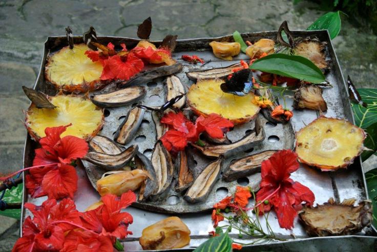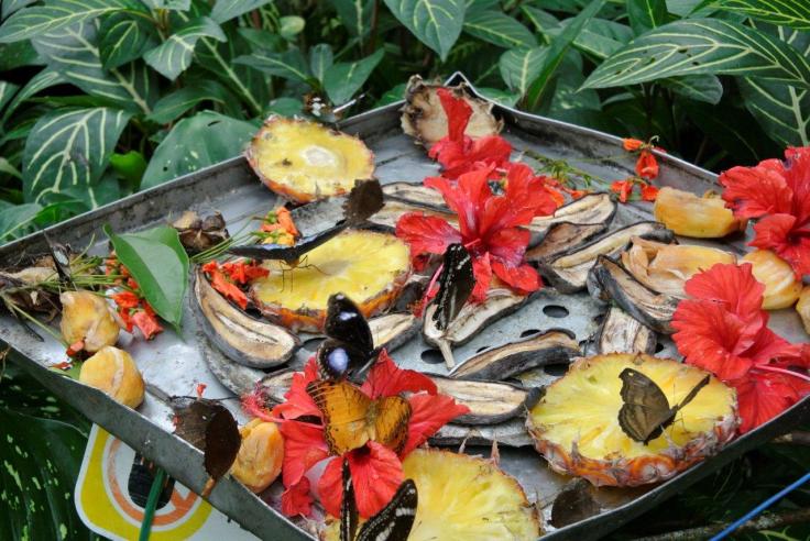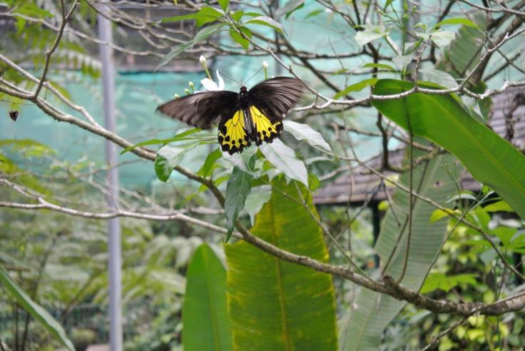 Die botanischen Gärten liegen direkt im Herzen der Stadt. Die große Parkanlage ist dabei in unterschiedliche Themengebiete unterteilt. Wenn man dem Stadttrubel und den Wolkenkratzern entfliehen möchte, hat man hier die Möglichkeit in der weitreichenden Parkanlage sich den unterschiedlichsten Pflanzen und Tieren zu widmen. Für einen schmalen Taler haben wir uns für den Schmetterlingspark entschieden und konnten ein paar wirklich beeindruckende Aufnahmen machen. Bloß einen Zitronenfalter (die einzige Art, die ich vorher kannte 😀 ) haben wir nicht gesehen 😦 . Dafür aber viele verschiedene und deutlich buntere Exemplare. Damit die Besucher die Schmetterlinge hautnah bestaunen können, ist der gesamte Schmetterlingspark von einem großen Netz umspannt. Da ist dann auch ein kleines weinendes Auge dabei, wenn man sieht, wie die Schmetterlinge nicht selten beim Flug vom Netz gehemmt werden. Daher würden wir für das nächste Mal also lieber den Hibiskusgarten ins Auge fassen, da wir von diesem viel Schönes gehört haben. Aber auch die Gehwege von Garten zu Garten sind auf jeden Fall einen Besuch wert.