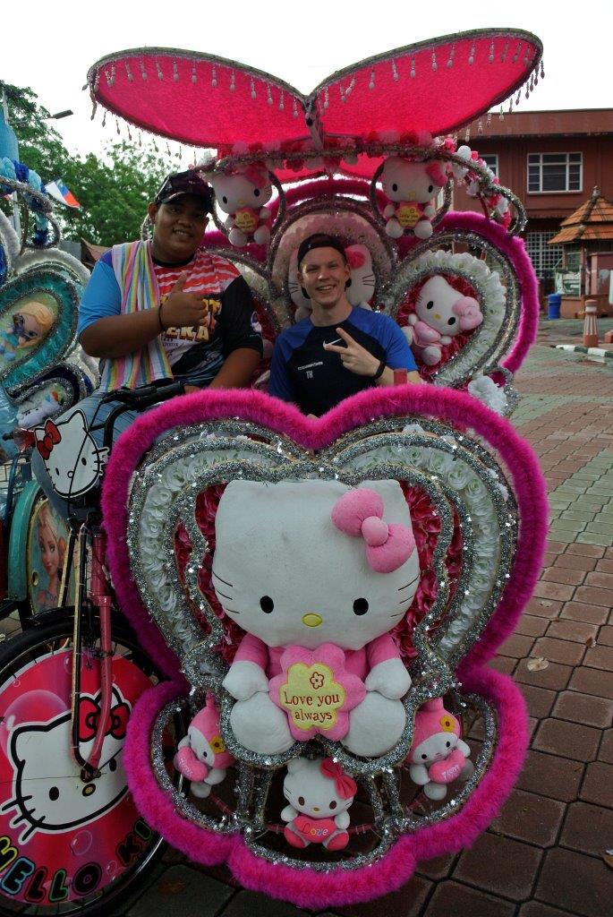 Da zu der Zeit Ferien in Malaysia waren, haben nicht nur wir die Stadt besucht, sondern vor allem Touristen aus dem ganzen Land. Zu diesem Anlass wurde jeweils am Freitag- und Samstagabend der berühmte Nightmarket aufgebaut. Hier konnten neben ganz unterschiedlichen Speisen auch Souvenirs und Kleidung erworben werden. Auf Nachfrage wurde uns wie vermutet bestätigt, dass Gucci, Nike, Adidas und RayBan natürlich alle original sind ;-). Auch bei Nacht fuhren die Trickshaws die Touristen noch und das sogar mit den buntesten Beleuchtungen. Ich fand es witzig! 😀