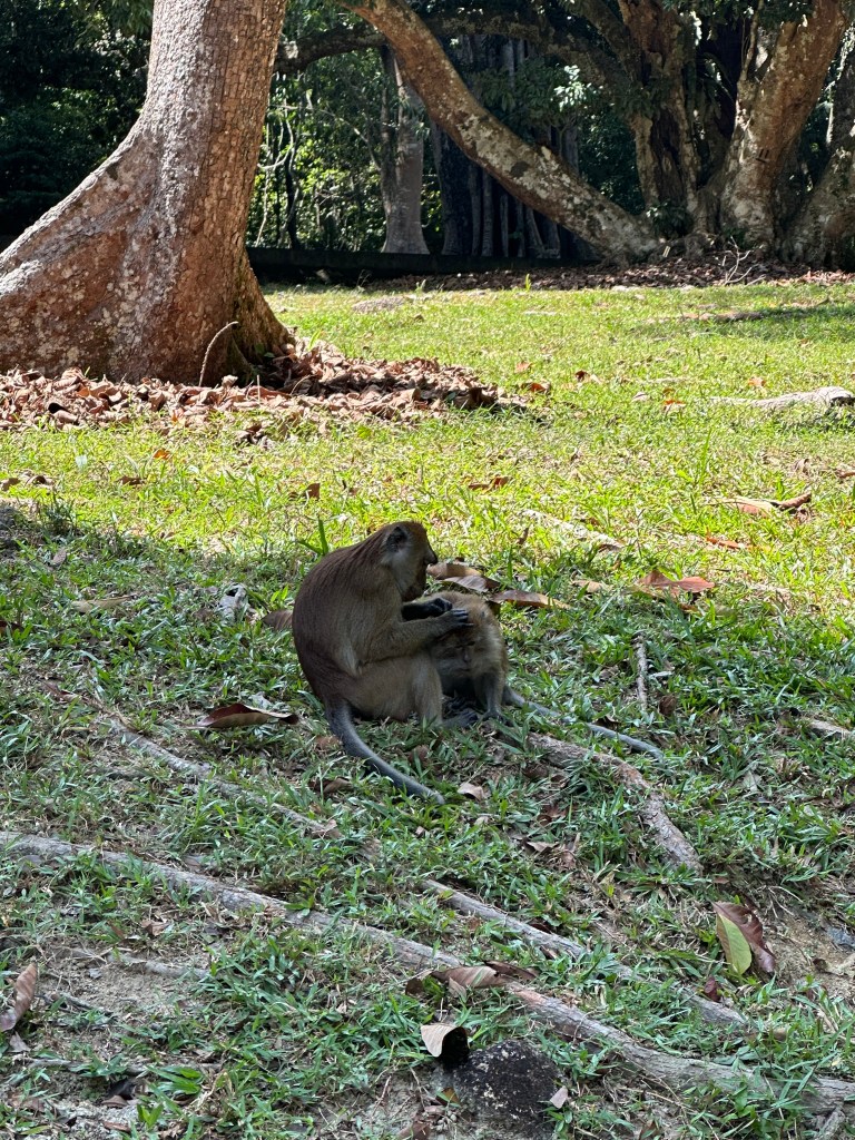Wir statteten wie angekündigt auch dem botanischen Garten von Penang einen Besuch ab. Hier sind verschiedene Baum und Palmenarten in ihrem natürlichen Lebensraum ausgewiesen. Neben den Pflanzen ist hier auch „die Mafia“ (wie Malaien ihre Affen bezeichnen) ansässig. Füttern sollte man die Affen jedoch weder hier noch irgendwo anders. Warum? Nur so wird sichergestellt, dass die Affen nicht die Überhand gewinnen und sich aggressiv verhalten, wenn sie einmal nicht gefüttert werden oder fette Beute in einem Rucksack wittern.