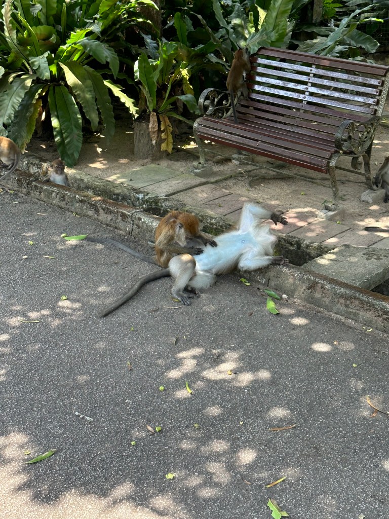 Wir haben immer darauf geachtet, dass wir nichts Essen in der Gegenwart der Affen und sind damit ganz gut gefahren. So waren die Affen immer friedlich und ließen sich auch beim Lausen auf dem Weg überhaupt nicht von uns stören, wie auch folgendes witziges Video belegt. 😀