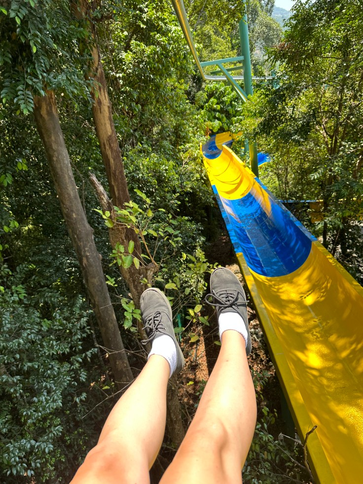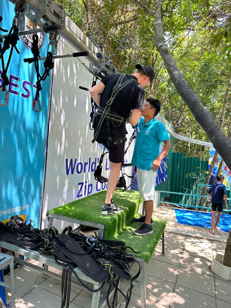 Der letzte Tag sollte also in den Escape Park gehen. Der Park besticht sogar durch 2 Guinnes World Records. Er beinhaltet nämlich neben der längsten Zip-Coaster (über 1100 Meter Länge) auch die längste Wasserrutsche (1111 Meter Länge) der Welt. Daneben gibt es noch viele weitere Attraktionen, wie zum Beispiel einen Kletterwald, eine Riesenschaukel, Trampoline und noch viele weitere Rutschen im Wasserpark. Eine gute Kombination aus Aktivitäten und Abkühlungen. Wir selbst haben uns auch noch auf die Warm-Skipiste gewagt, was aber mit dem ein oder anderen Sturz verbinden und bei 33 Grad auch sehr schweißtreibend war.