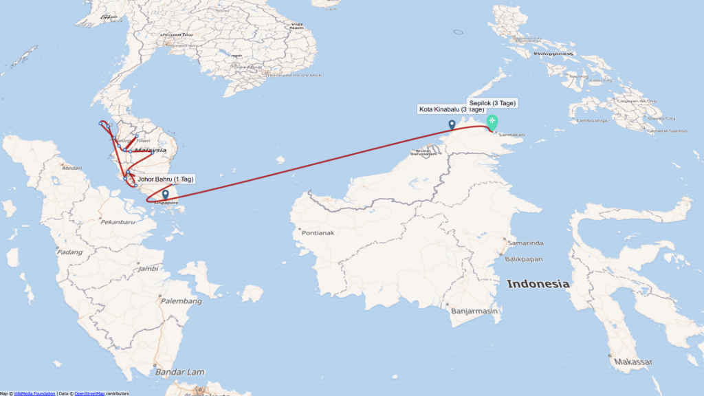 Auch wenn beide Zentren sehr schön und auch naturnah aufgebaut sind, hat man dennoch ein wenig das „Zoo-Gefühl“ vor allem, da man ständig auf eigens errichteten Wegen läuft und natürlich auch allerhand weitere Touristen vor Ort sind. Trotzdem war es eine schöne Erfahrung und wir können einen kurzen Zwischenstopp in Sepilok auf jeden Fall empfehlen. Wir haben aber noch die Hoffnung den Tieren in „freierer“ Wildbahn zu begegnen, da wir in den kommenden 3 Tagen eine kleine Boots-Tour gebucht haben auf dem Fluss Kinabatangan mitten in Borneos Dschungel. Ihr werdet in den nächsten Tagen von dem Bericht lesen können. 🙂
