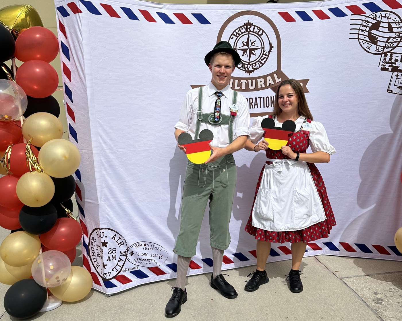Nach zwei Tagen in der Disney University ging es dann endlich zum deutschen Pavillon im Epcot Park – unserem Arbeitsplatz für die nächsten Monate. Der deutsche Pavillon müsste dabei aber wohl eher bayrischer Pavillon heißen, denn wir repräsentieren hier das ganze Jahr vor allem die bayrische Kultur und das natürlich in Dirndl und Lederhose. Der Pavillon selbst besteht aus einem Indoor „All you can eat“ – Restaurantbereich, dem deutschen Biergarten. Hier kann man verschiedene deutsche Speisen wie Schnitzel, Bratwurst, Sauerkraut, aber auch Apfelstrudel und Schwarzwälder Kirschtorte probieren. Auch wenn es nicht 100 % wie „Dahoam“ schmeckt, ist das Essen dennoch wirklich lecker. Zudem gibt es noch einige Stände und Läden draußen, an denen unter anderem deutsches Bier gezapft und auch Brezeln verkauft werden. Je länger ich das hier erlebe, desto verrückter fühlt es sich an. Wir sind hier also in einem Freizeitpark mitten in Florida und verkörpern in Dirndl und Lederhose „unsere“ Kultur :-D. Wahnsinnig verrückt, aber auch wahnsinnig lustig! Das Wichtigste ist aber – den Gästen gefällt es sehr, sie lieben das Essen und unser Bier.